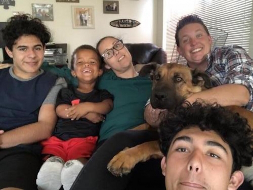 All of the boys are involved in the care of our animals and are comfortable and loving to all animals. The boys love playing with dogs. They have a lot of energy, but they also love to snuggle the dogs after walks and/or play. The take turns having visiting dogs sleep in their rooms, walking, and feeding.